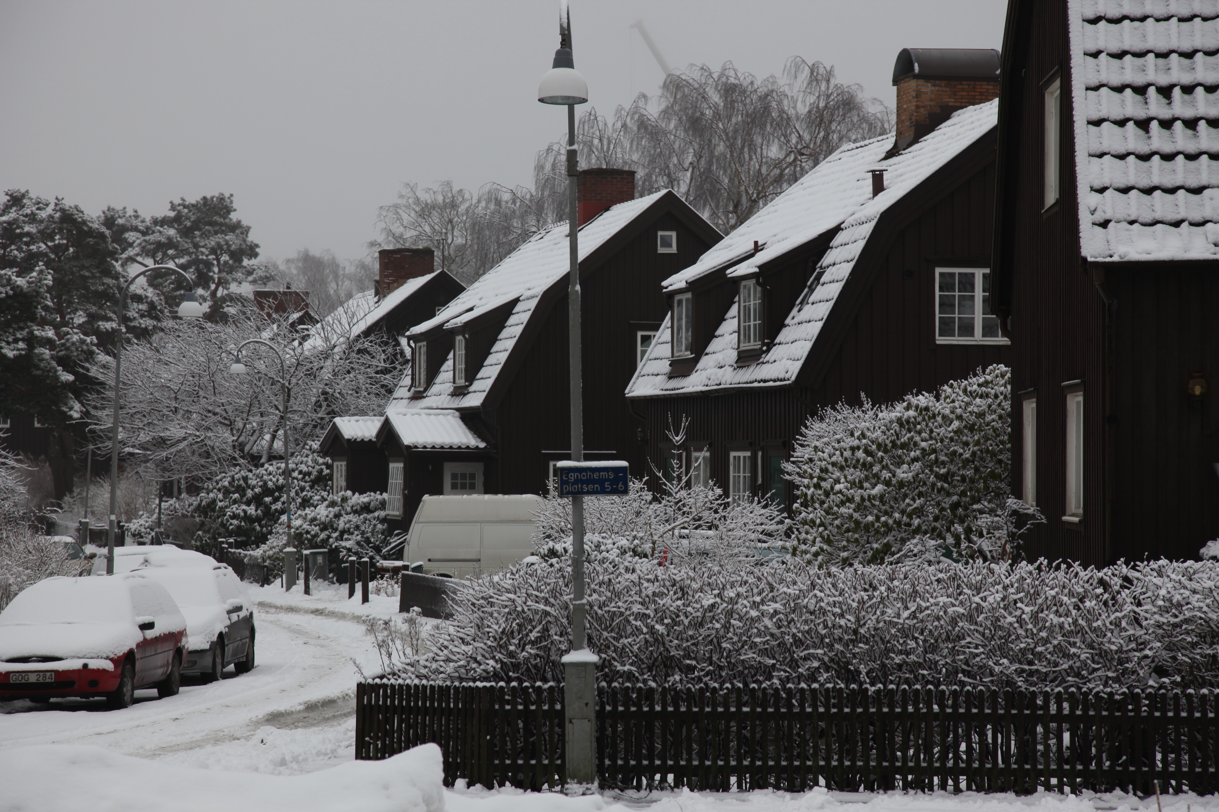 Stereotyp 3: Upprepning som tema med variationer. Landala egnahem byggdes under 1910-talet och var tänkt för skötsamma arbetare men med inflyttade i huvudsak från medelklassen. Planen gjordes av förste stadsingenjören Albert Lilienberg och typhusen ritades av Carl Westman, »det ena det andra likt«. Tittar man närmare är det fullt av små variationer i storlek, takform och detaljer. Foto: Claes Caldenby.